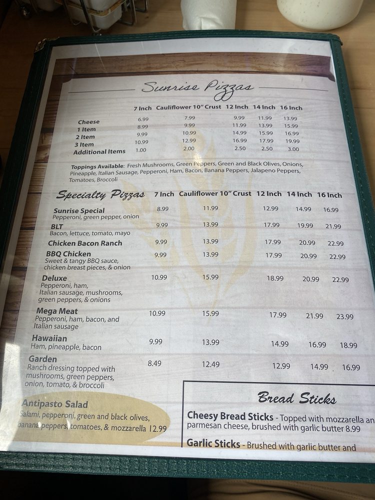 Sunrise Cafe and Cabins Menu (Update 2025)